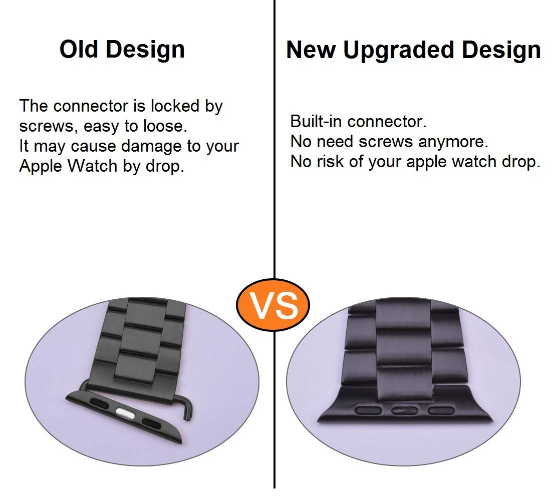 - Upgrade The upgraded adapters and band are made into an integrated whole. no screws on the adapters now. Never worry about the adapters of this iWatch band 45mm broken or dropped off