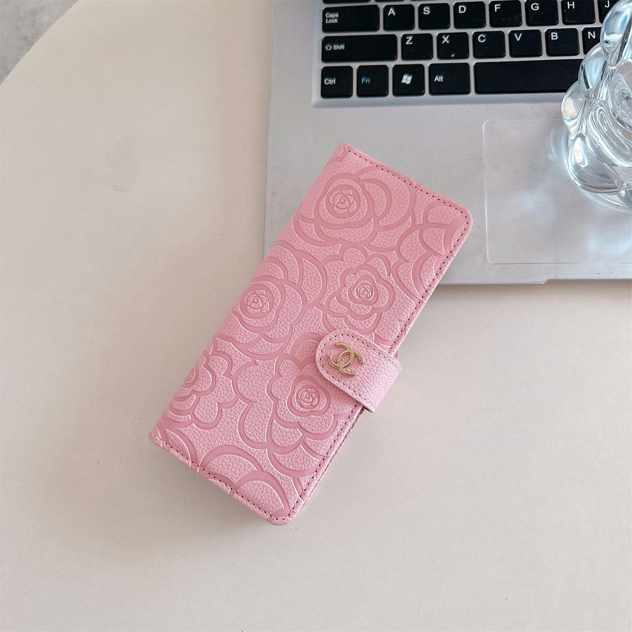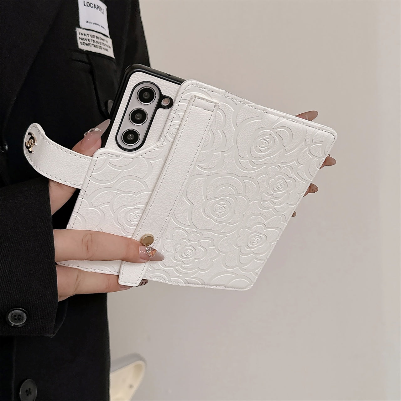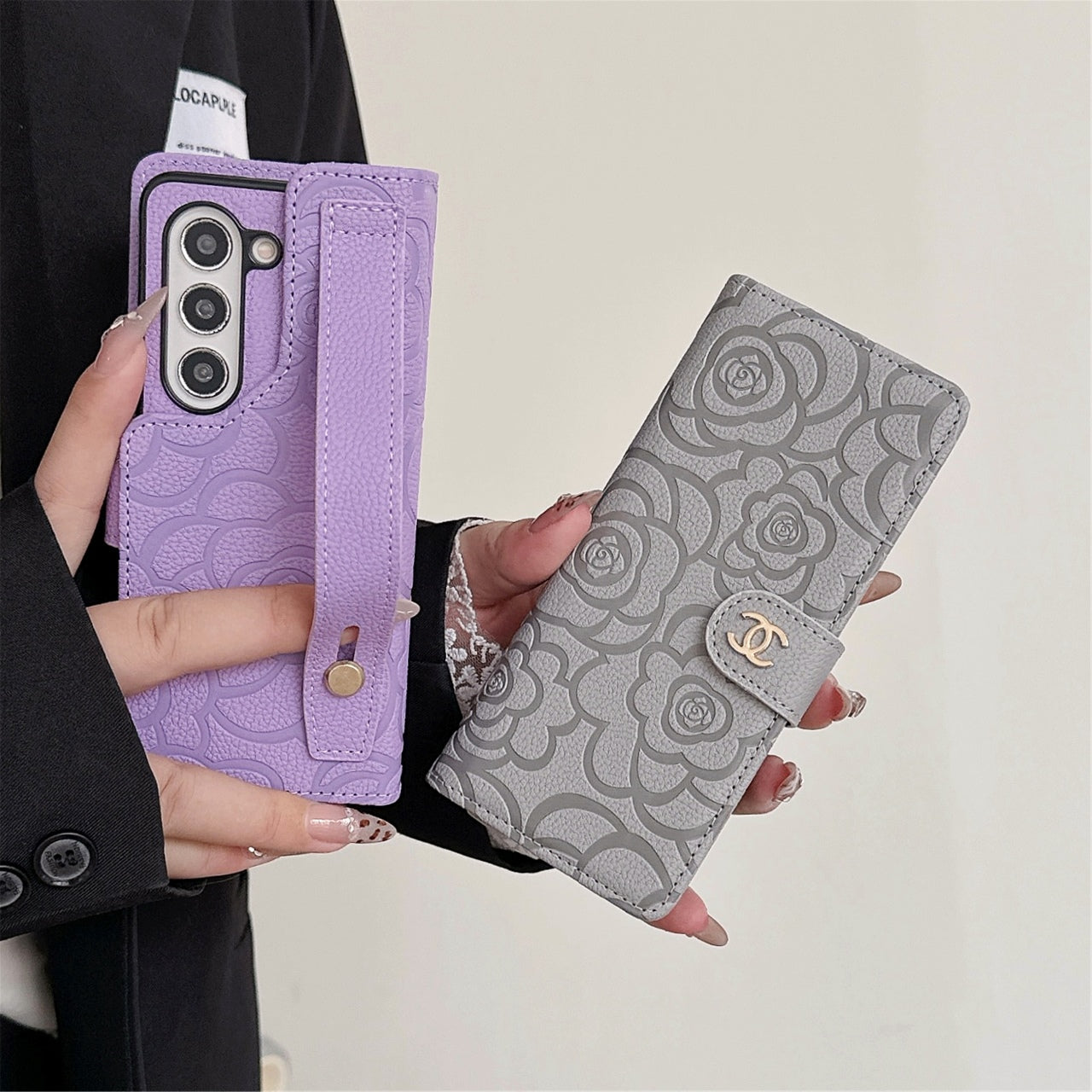 Camellia Wrist Strap Magnetic Leather Fold Case