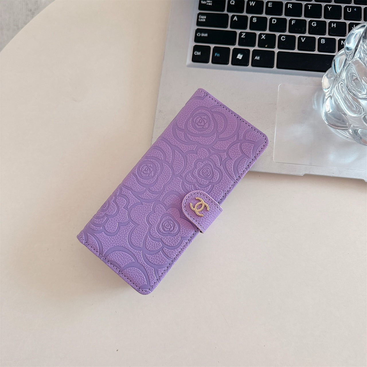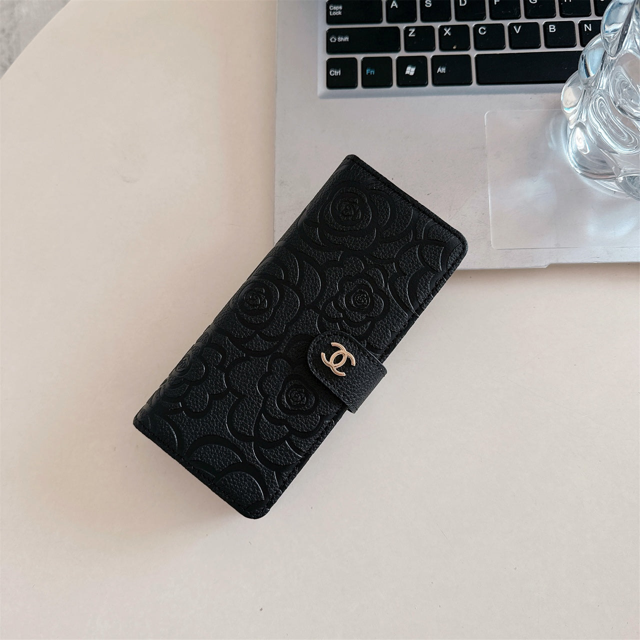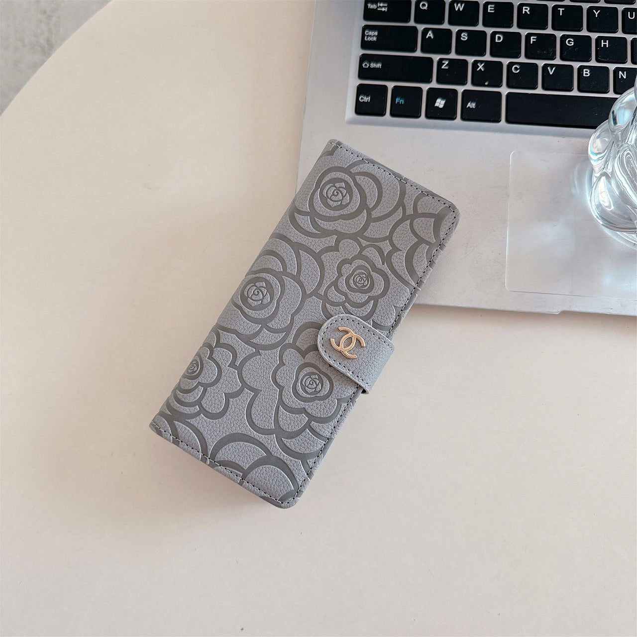 Camellia Wrist Strap Magnetic Leather Fold Case