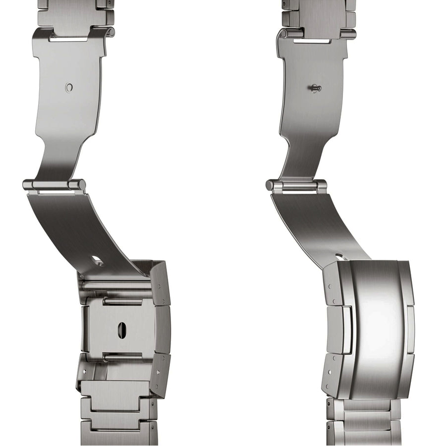 The Deployant Clasp. a symbol of grace and strength. adds an extra touch of elegance. The captivating play of light on silver. titanium. or black hardware enhances your every move.