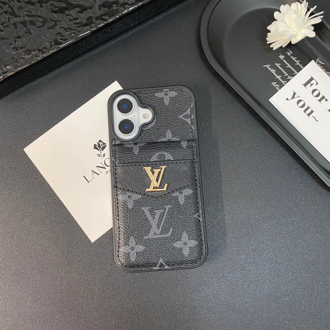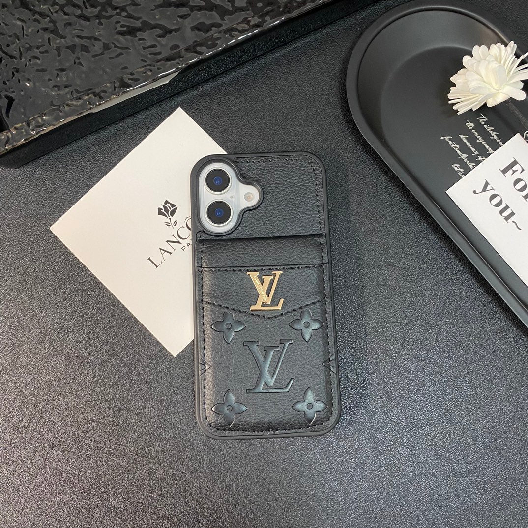 Classic Embossed Golden Logo Leather Card Wallet Case