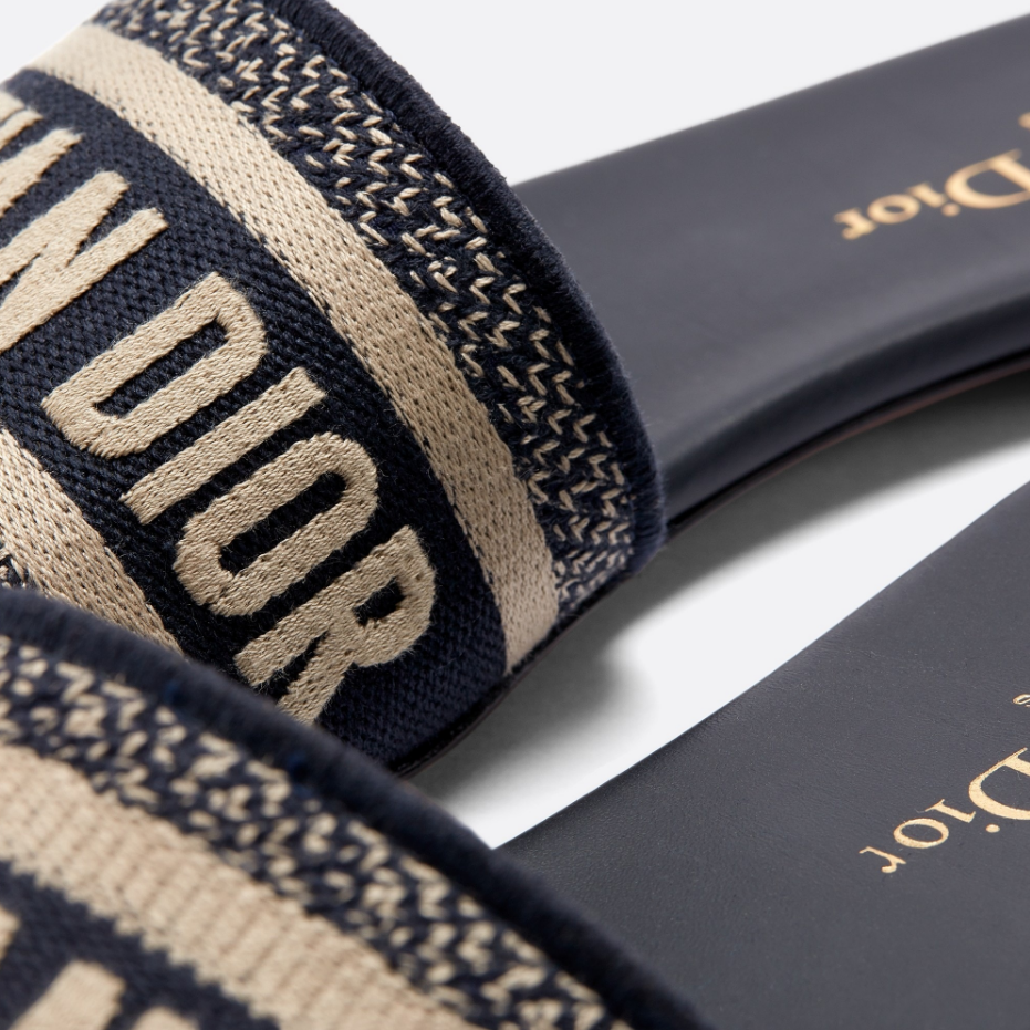 - The embroidery slide has a timeless and emblematic silhouette. The slide's upper features a black embroidered brand signature and instantly stands out. The streamlined shoe slips on easily and offers effortless style.