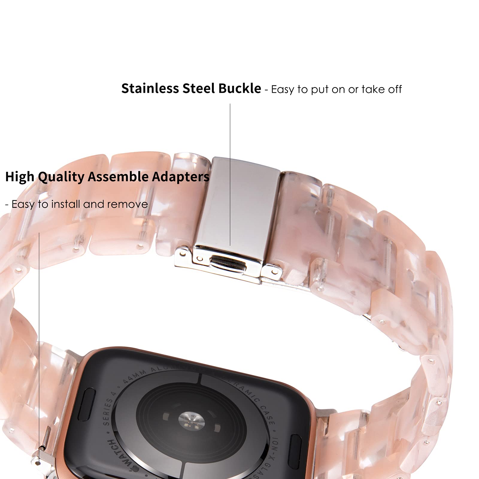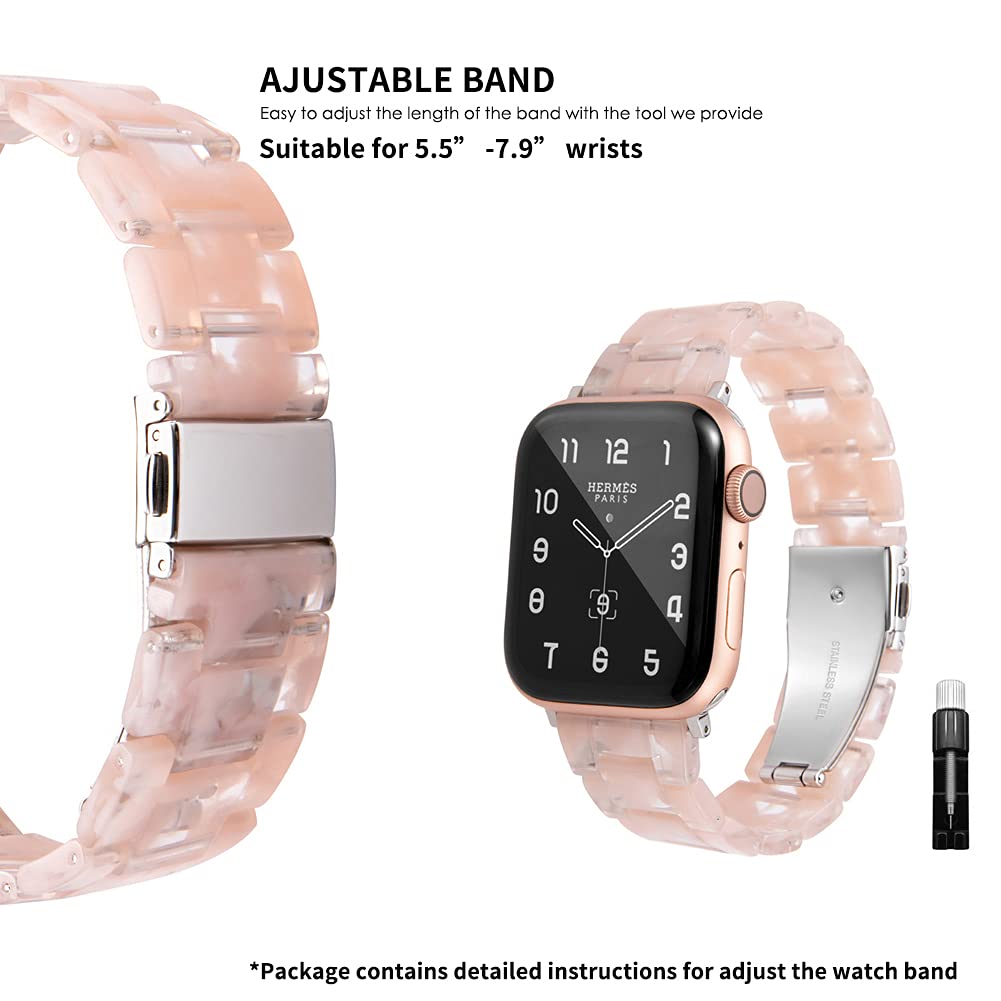 • 【So Easy to Wear and Adjust!】The refined folding clasp ensures the tortoise apple watch band is easy and quick to put on and take off at any time. A clear instruction and a resizing tool are included. After reading the instruction. you can quickly adjust the womens rose gold apple watch band to fit your wrist within seconds!