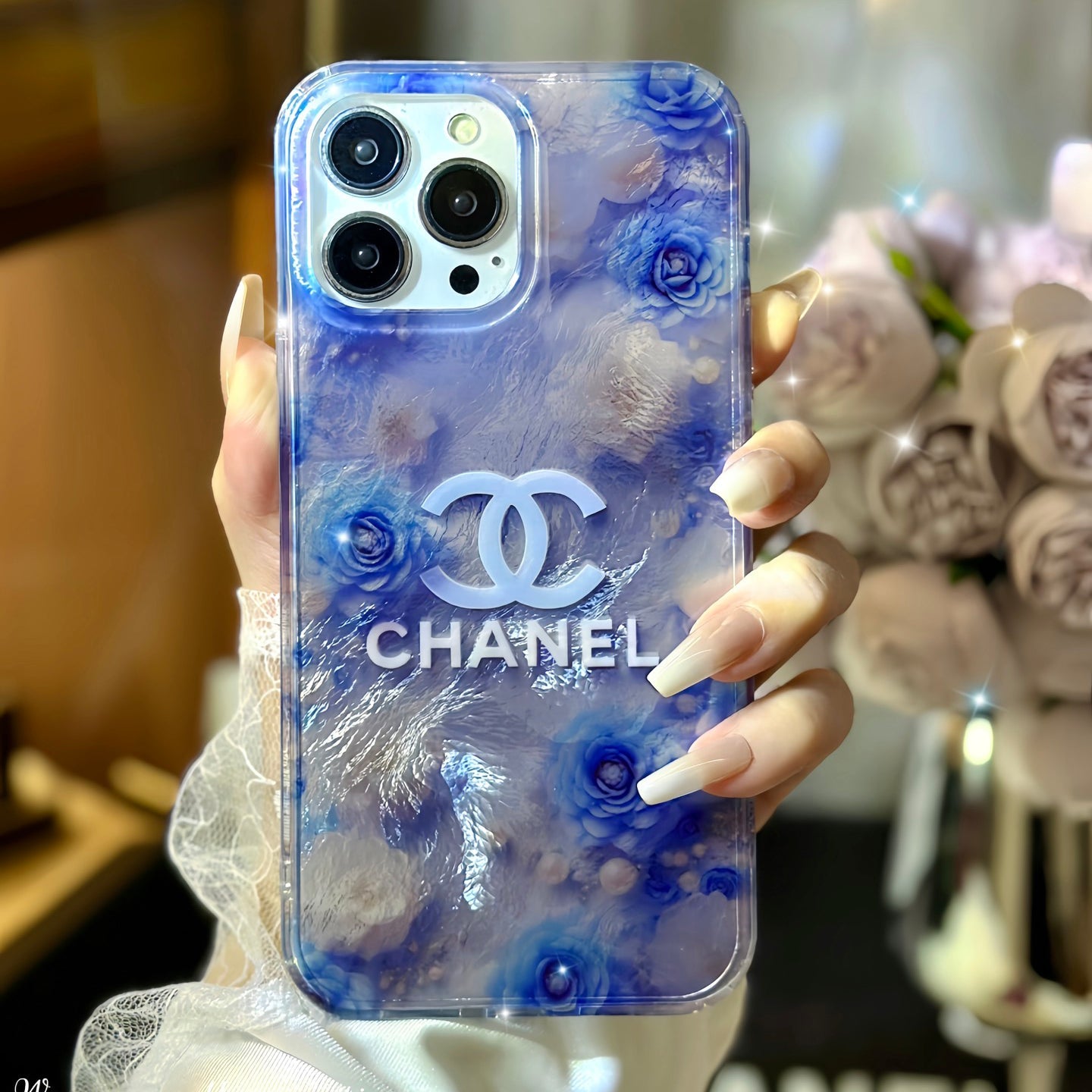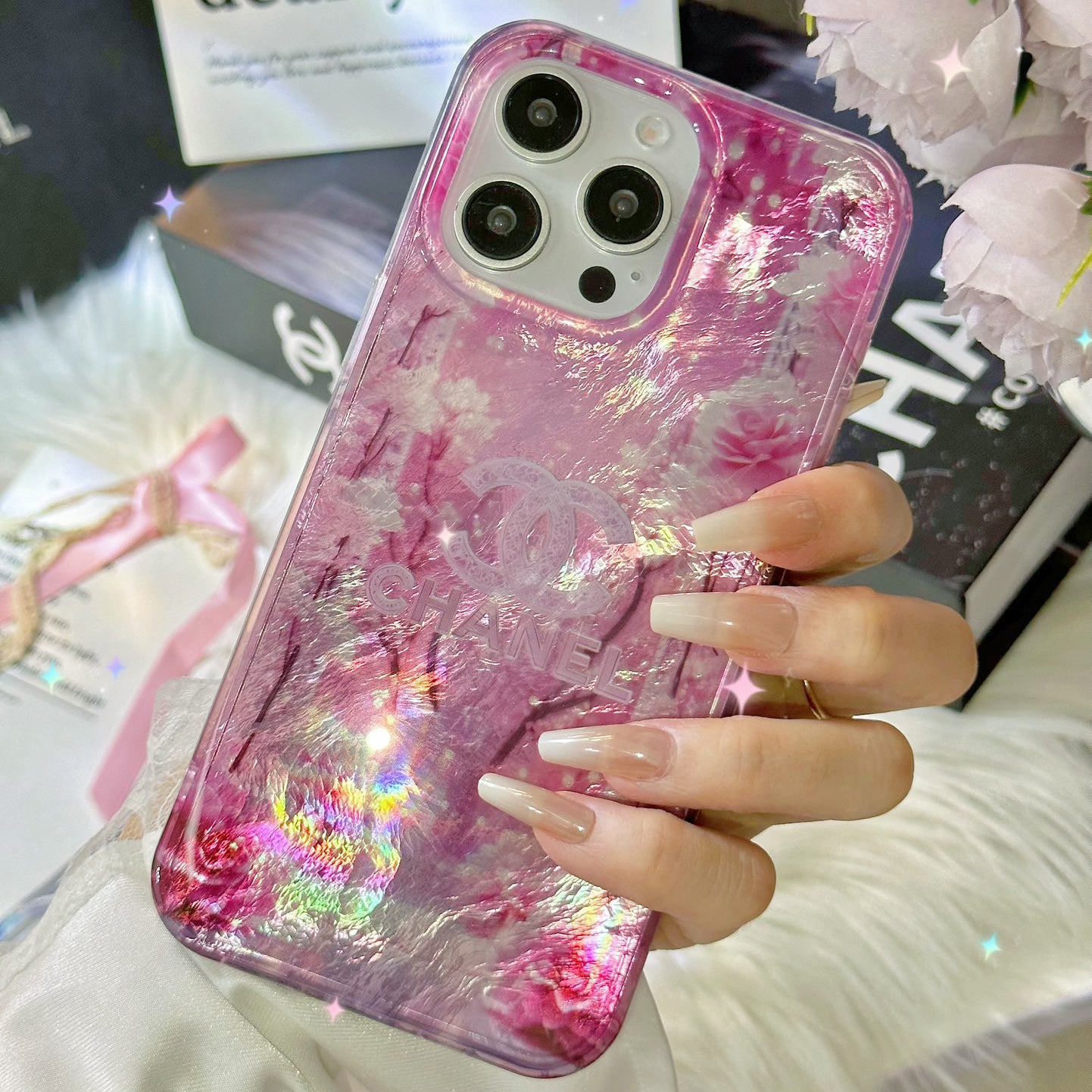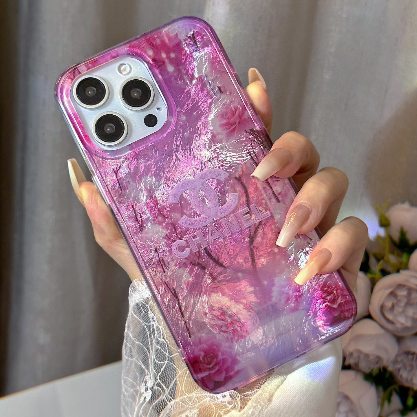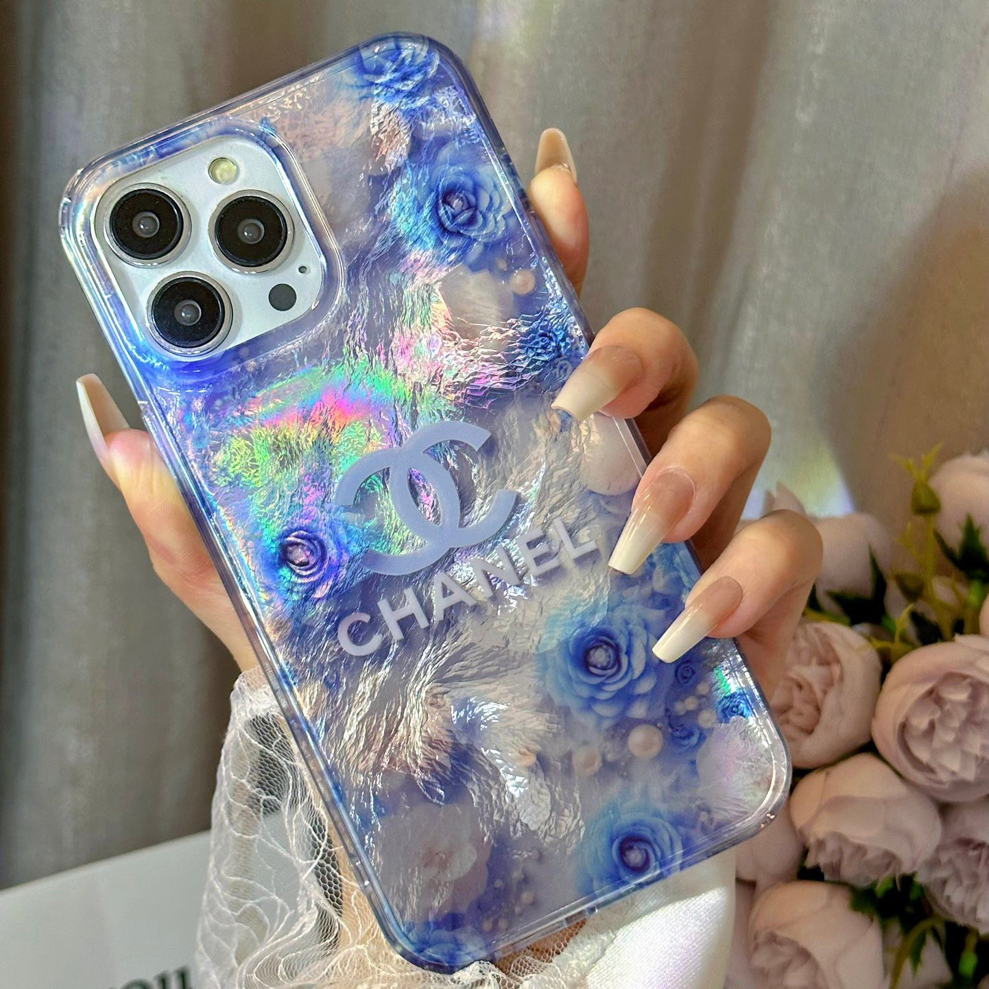 Crystal Clear Double-Sided Laser Rose Embossed Case