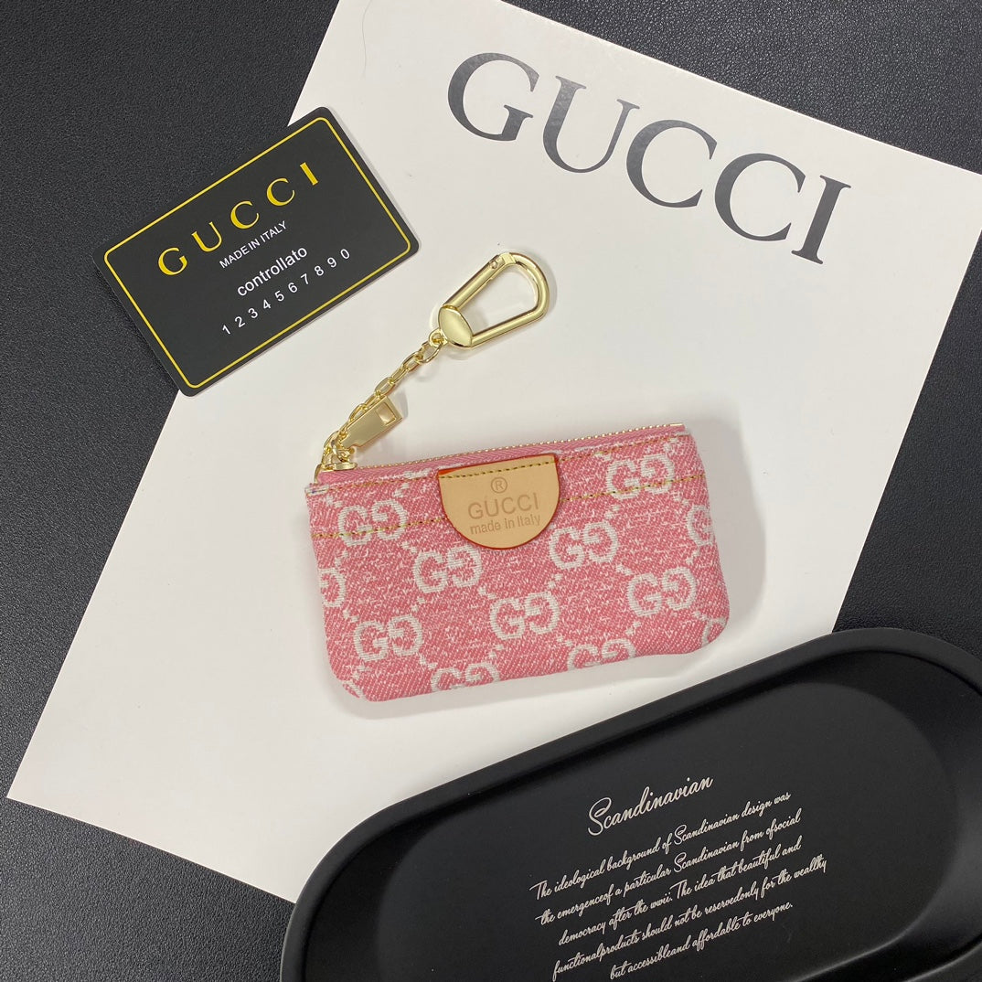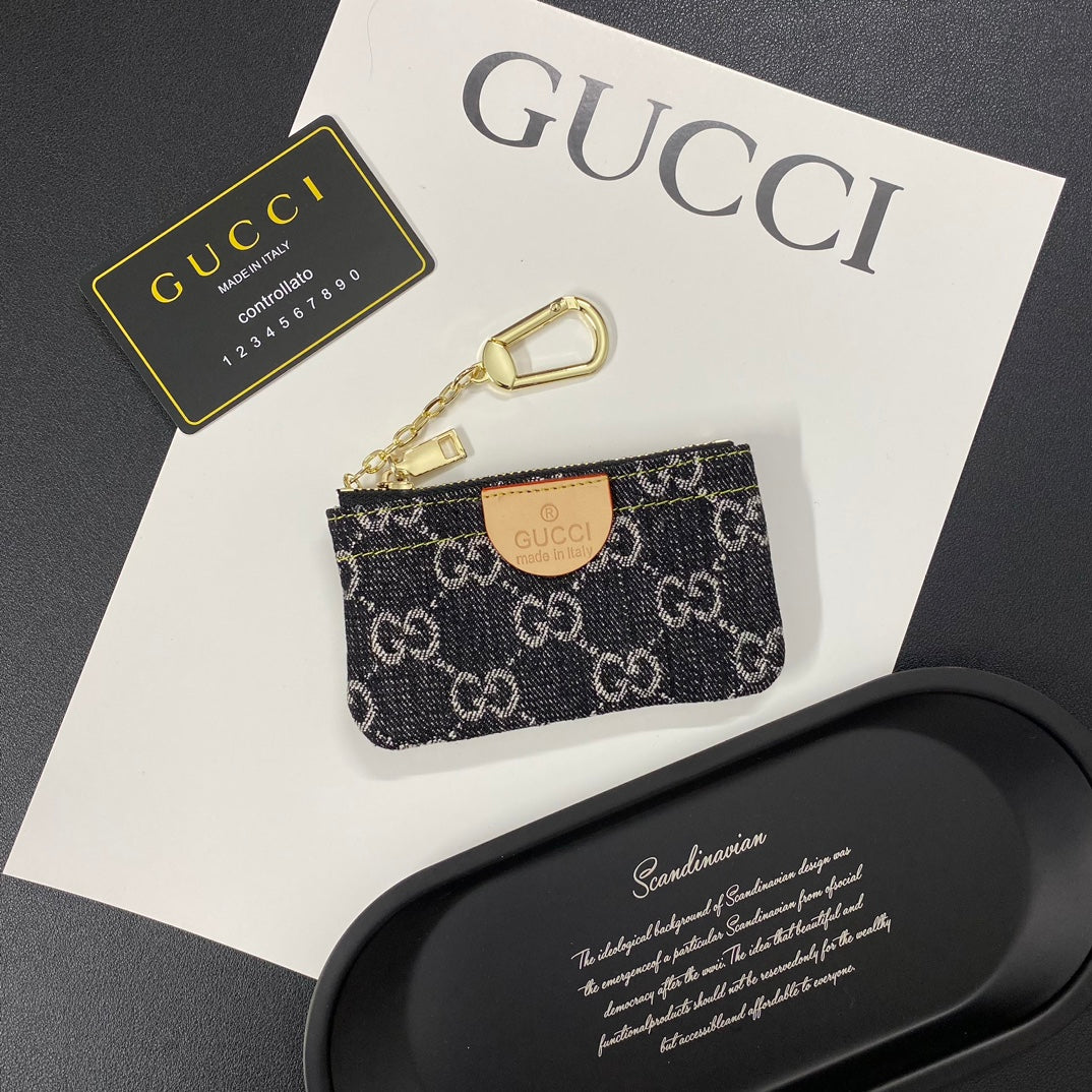 Pochette Card Key Holder is made of stone-washed monogram denim with tanned leather trim and gold metal hardware. Not only can it be used as a keychain. but the secure zippered opening can also accommodate cash and cards. It can also be fixed to a bag or belt with a small hook and chain.