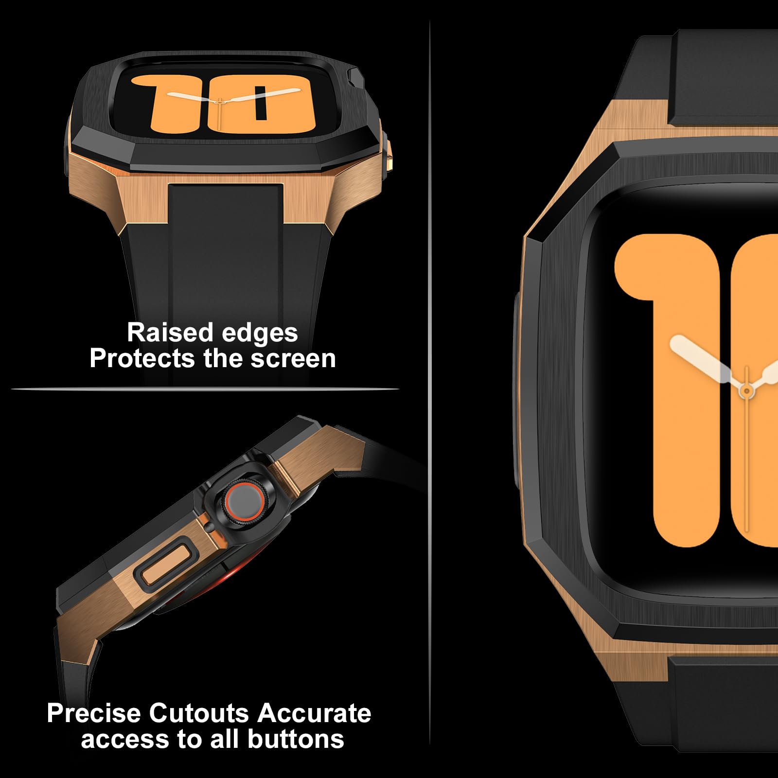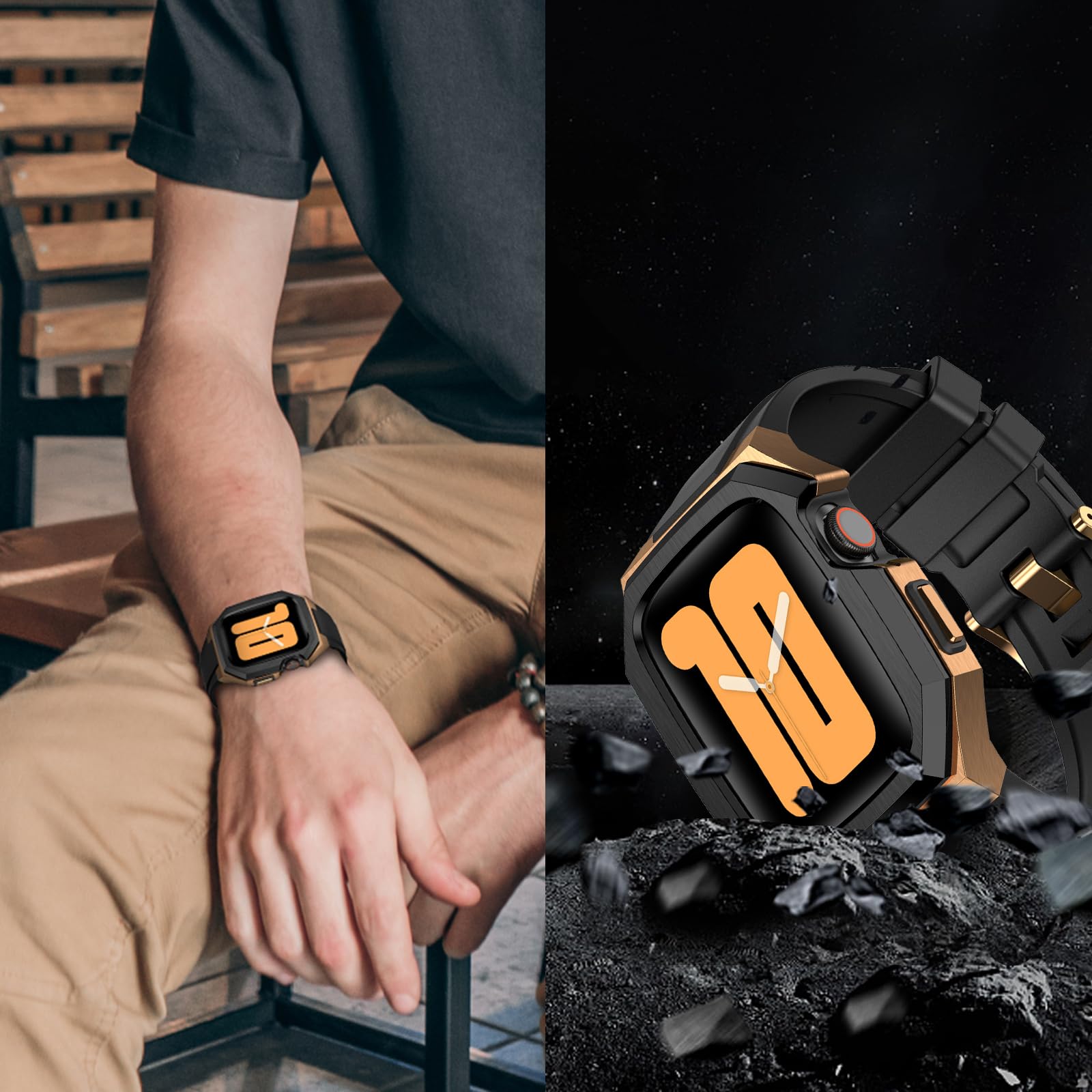 - 【Luxury & Classic Design】The luxury and classic design can upgrade your watch and make it a new look. The rugged band case for apple watch is compatible for comercial occasion. leisure or sport. Packed in an exquisite gift box. the smartwatch band is a perfect gift for your own use or for your father/husband/friends.
