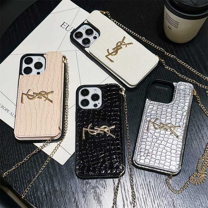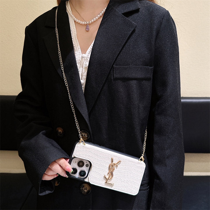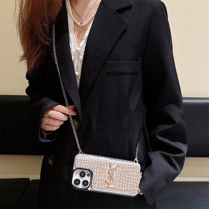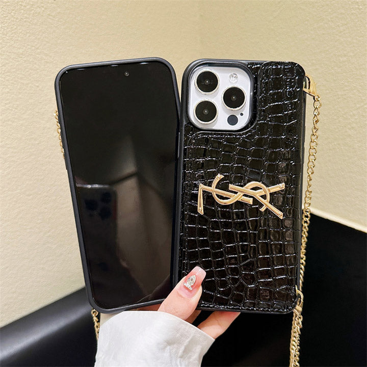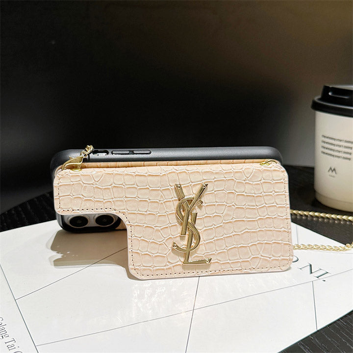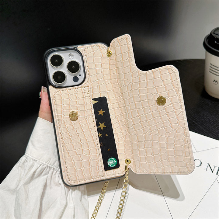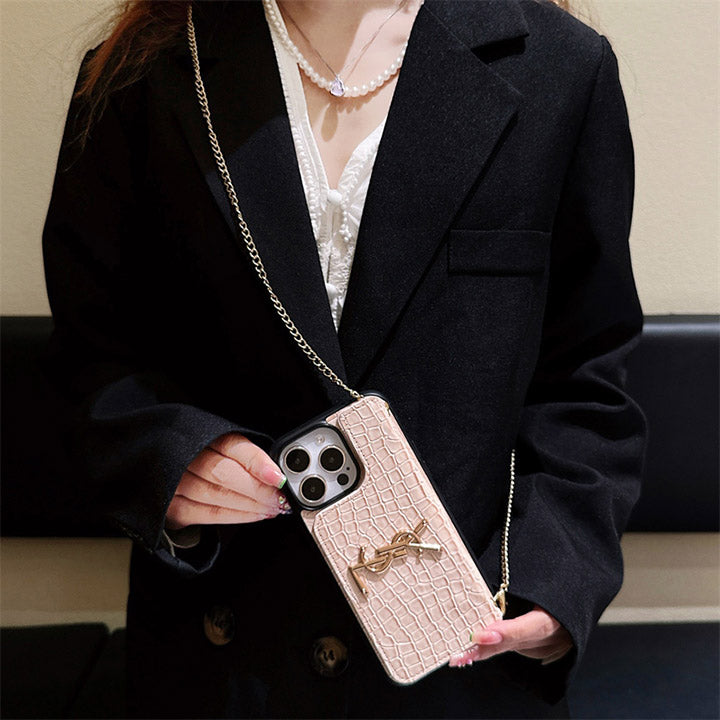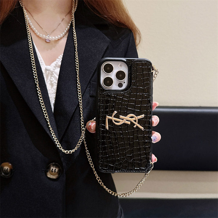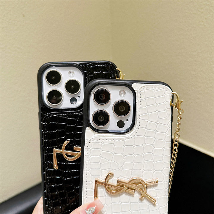 Metal Logo Leather Card Chain Case