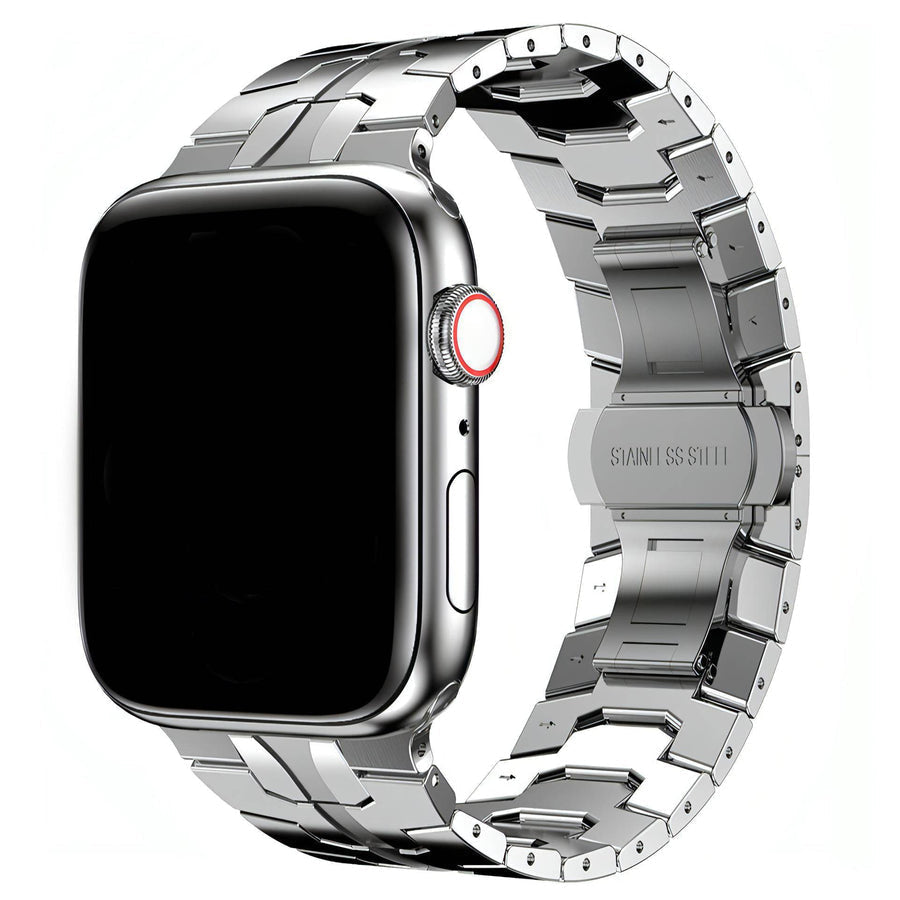 If you're looking for a strap that stands out from all others and gives you something special. look no further. The Nora Stainless Steel Band is designed to bring a striking and masculine look with it's sharp angles and precise lines.