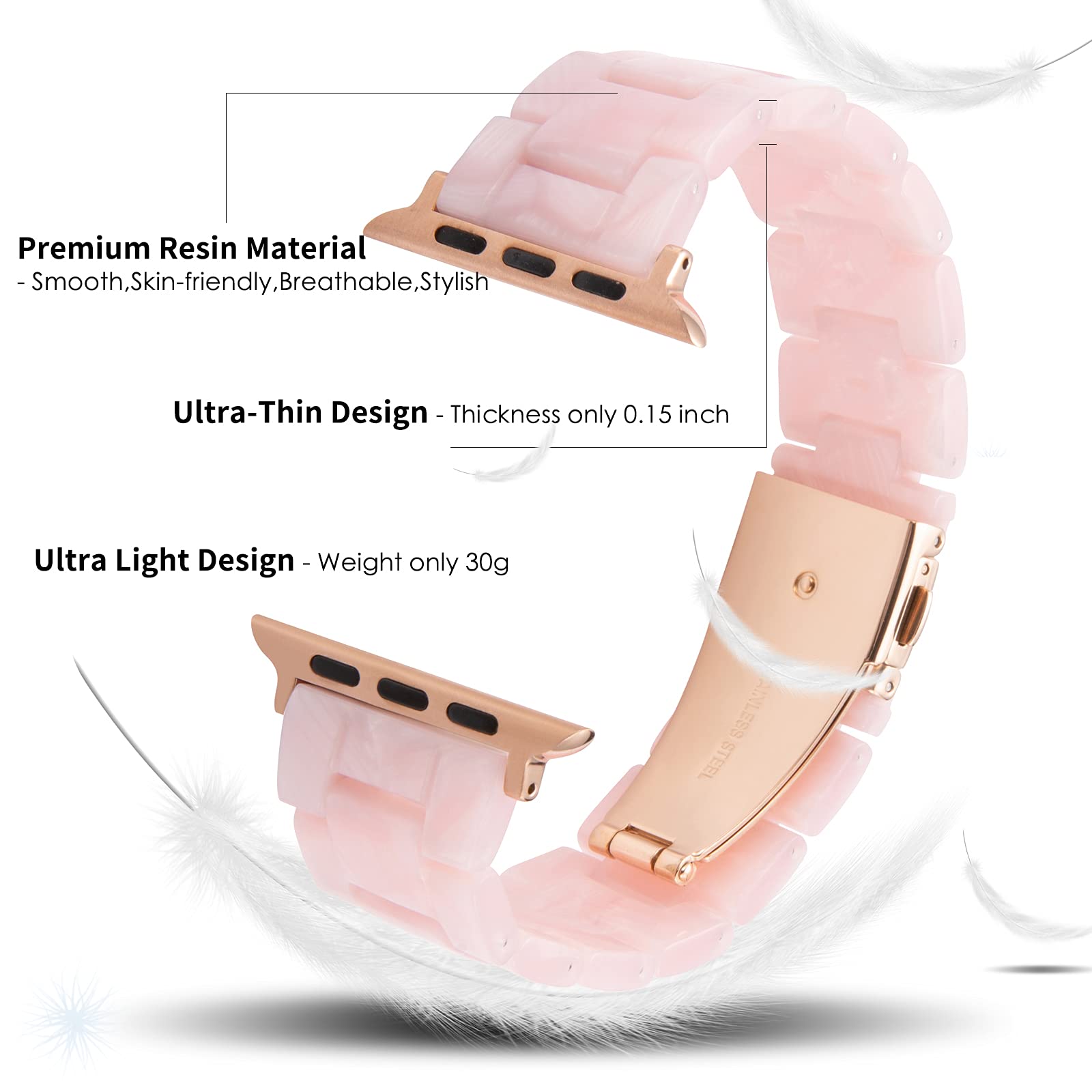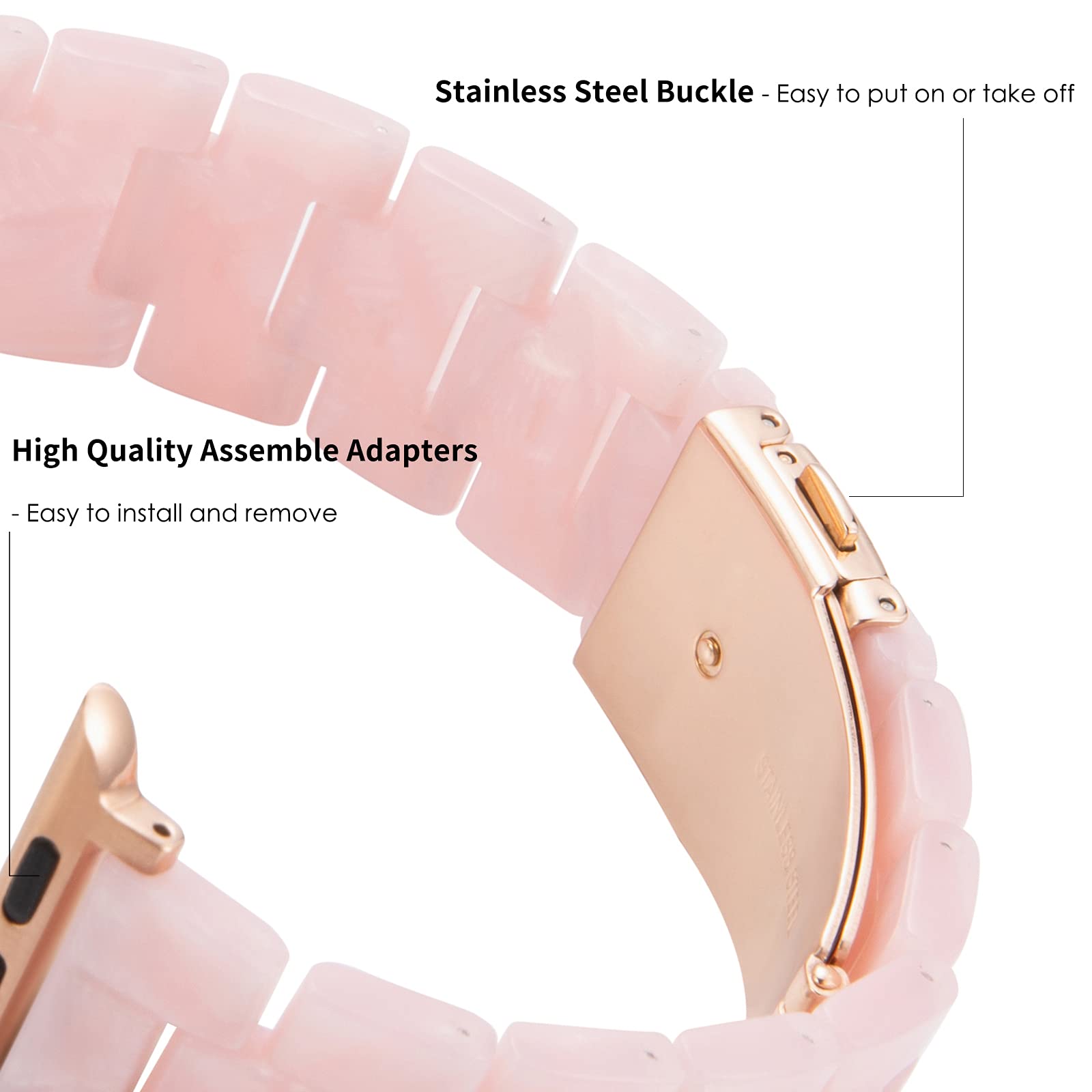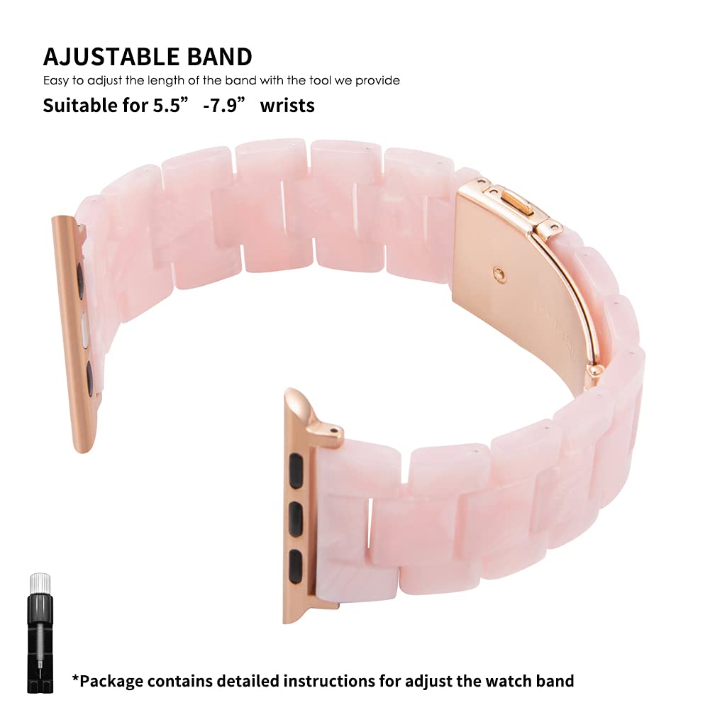 • 【So Easy to Wear and Adjust!】The refined folding clasp ensures the tortoise apple watch band is easy and quick to put on and take off at any time. A clear instruction and a resizing tool are included. After reading the instruction. you can quickly adjust the womens rose gold apple watch band to fit your wrist within seconds!