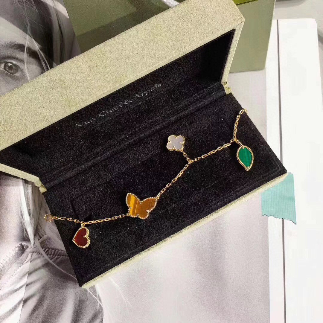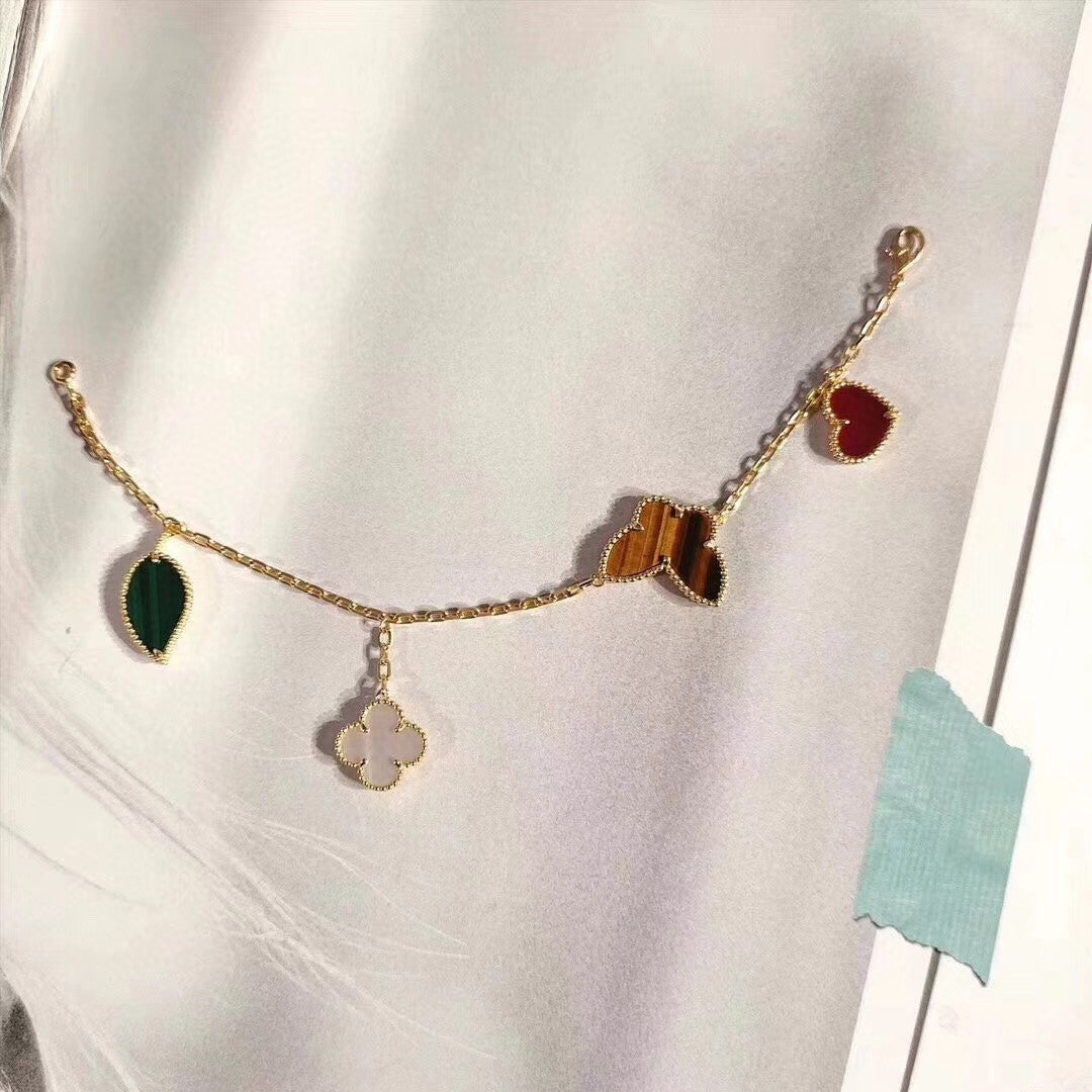 - Each petal of this bracelet represents a kind of meaning. The natural white fritillary clover represents luck; the natural malachite leaves represent health; the natural carnelian love represents good love; the tiger's eye butterfly represents freedom and wealth; The meaning can bring good luck and happiness to the wearer.