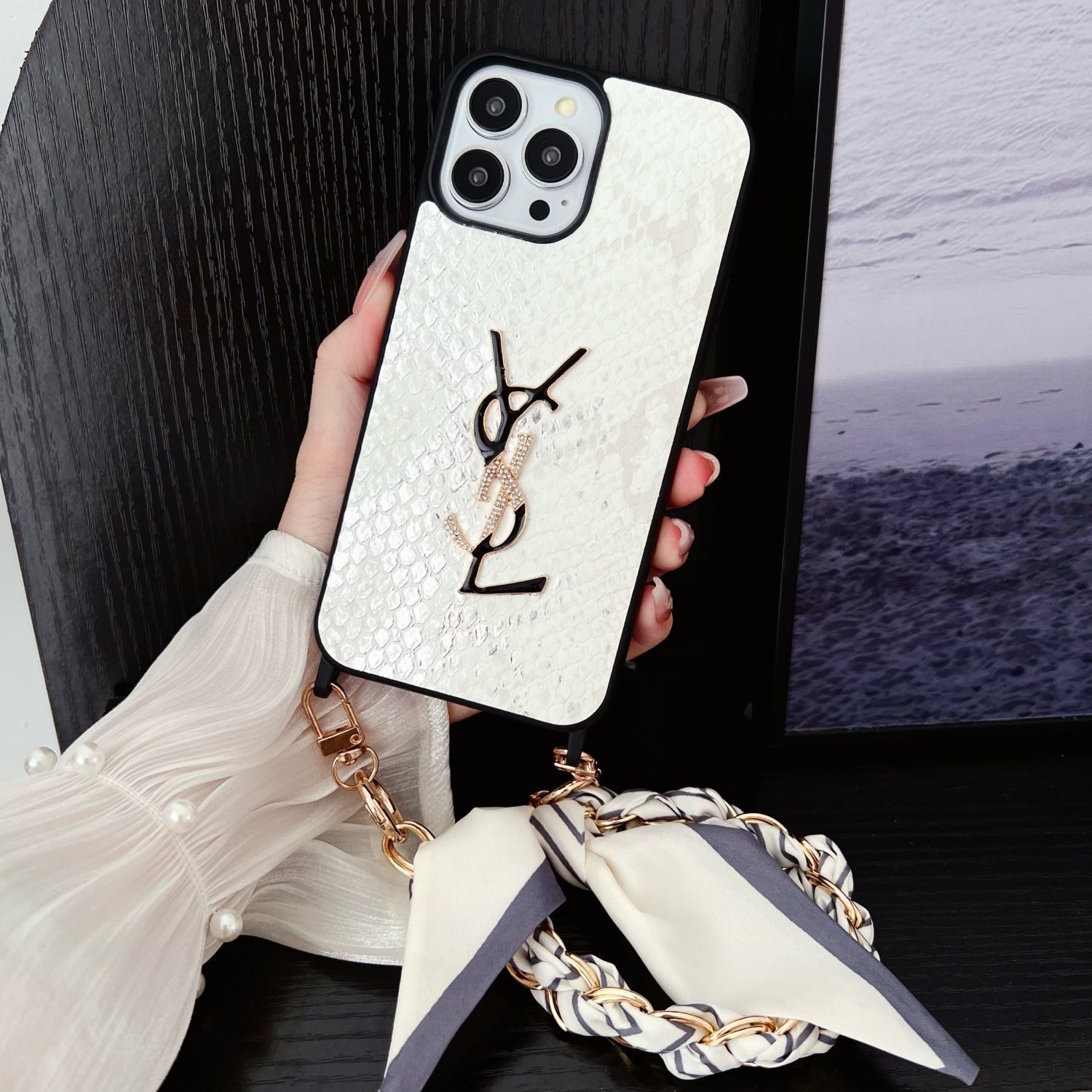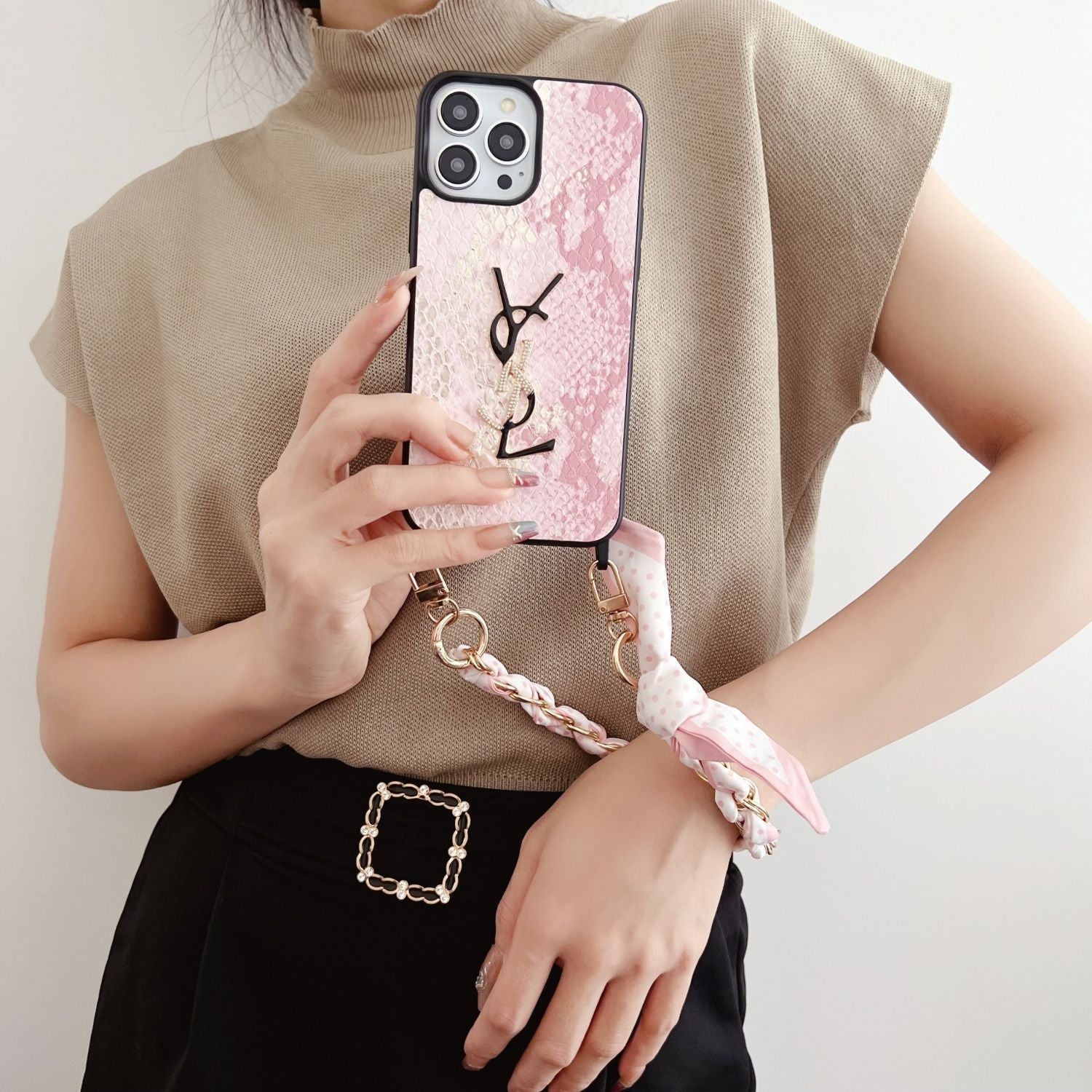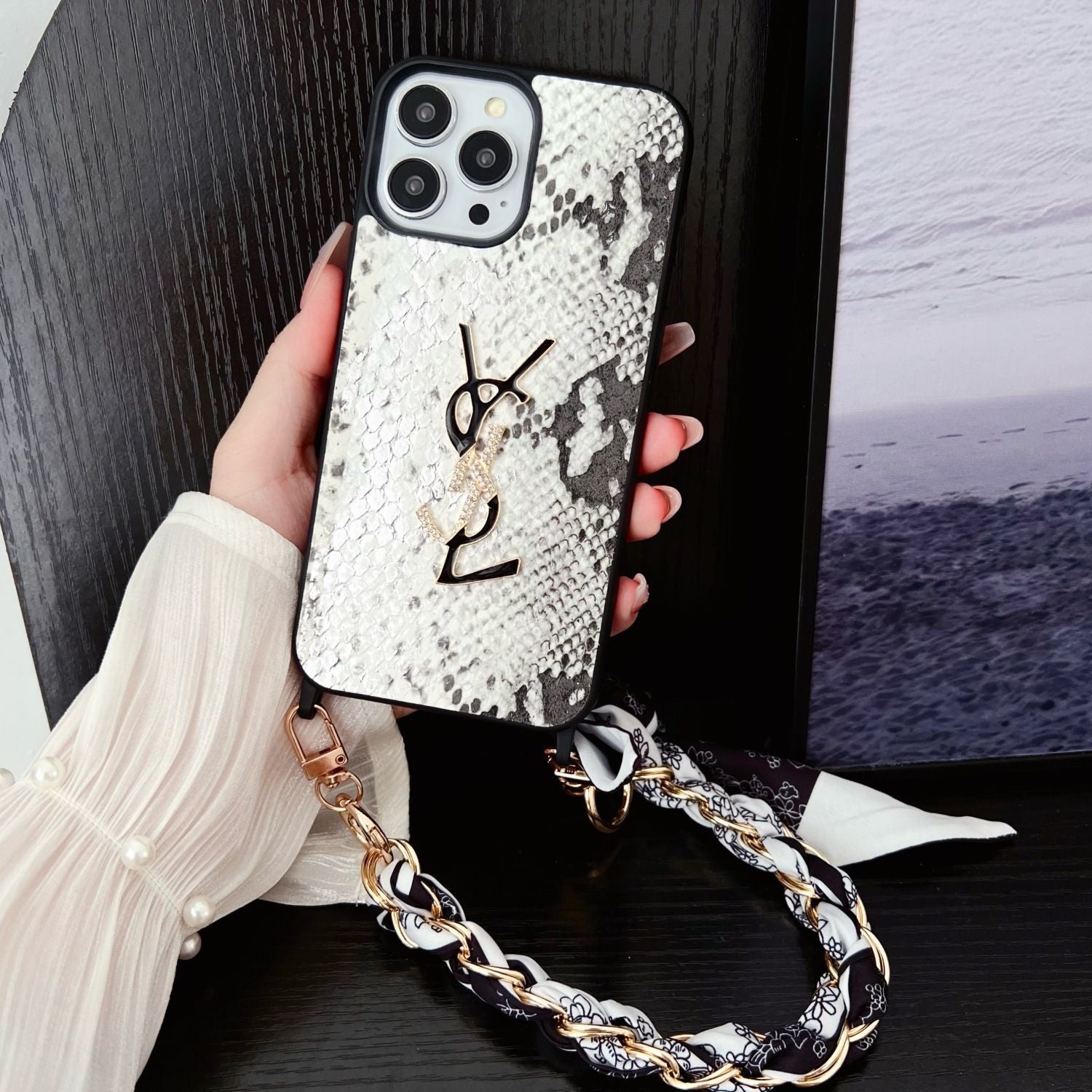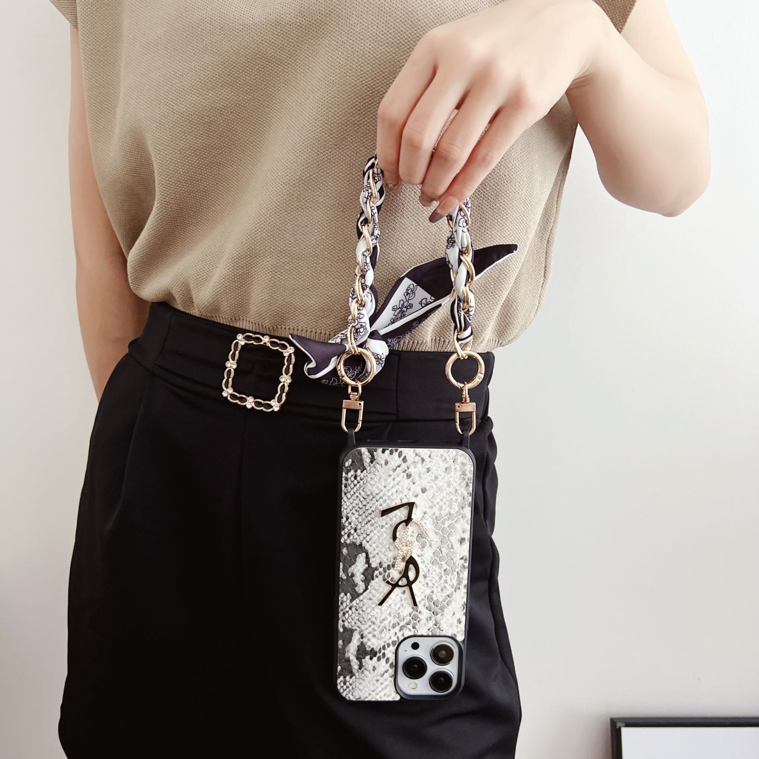 Silk Scarf Chain Snakeskin Pattern Case