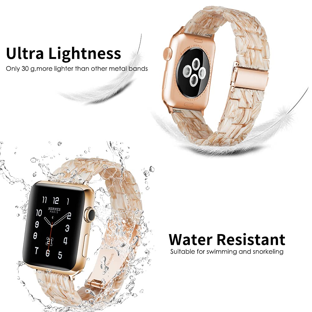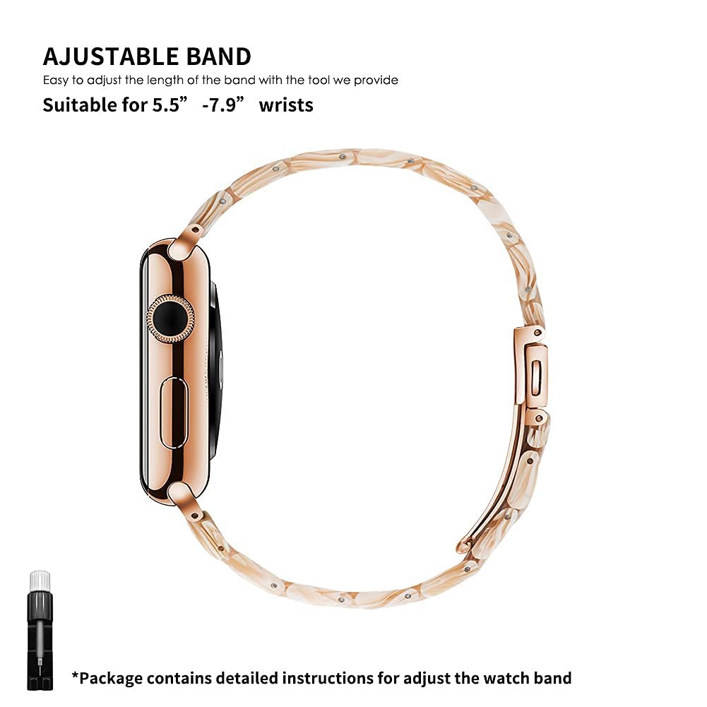 • 【So Easy to Wear and Adjust!】The refined folding clasp ensures the tortoise apple watch band is easy and quick to put on and take off at any time. A clear instruction and a resizing tool are included. After reading the instruction. you can quickly adjust the womens rose gold apple watch band to fit your wrist within seconds!