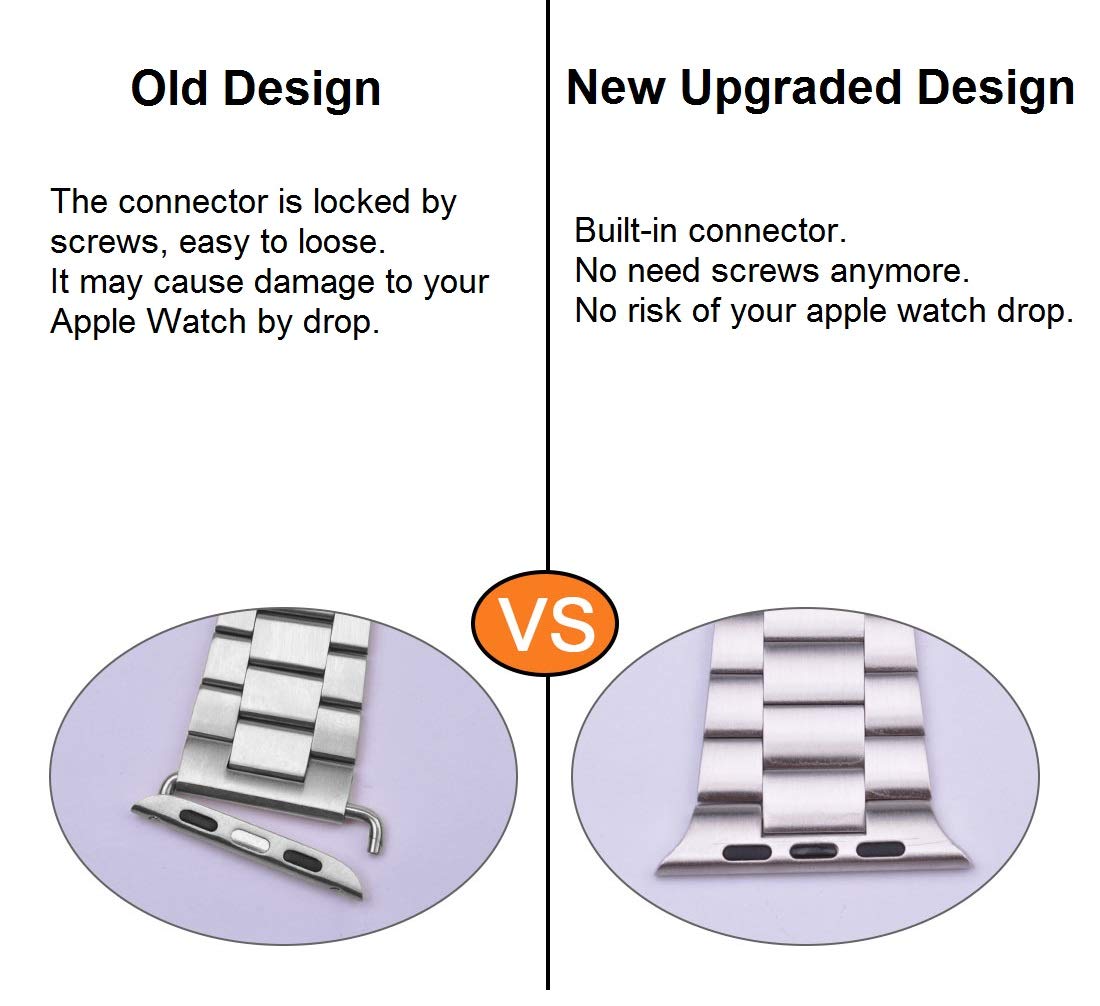 - Upgrade The upgraded adapters and band are made into an integrated whole. no screws on the adapters now. Never worry about the adapters of this iWatch band 45mm broken or dropped off