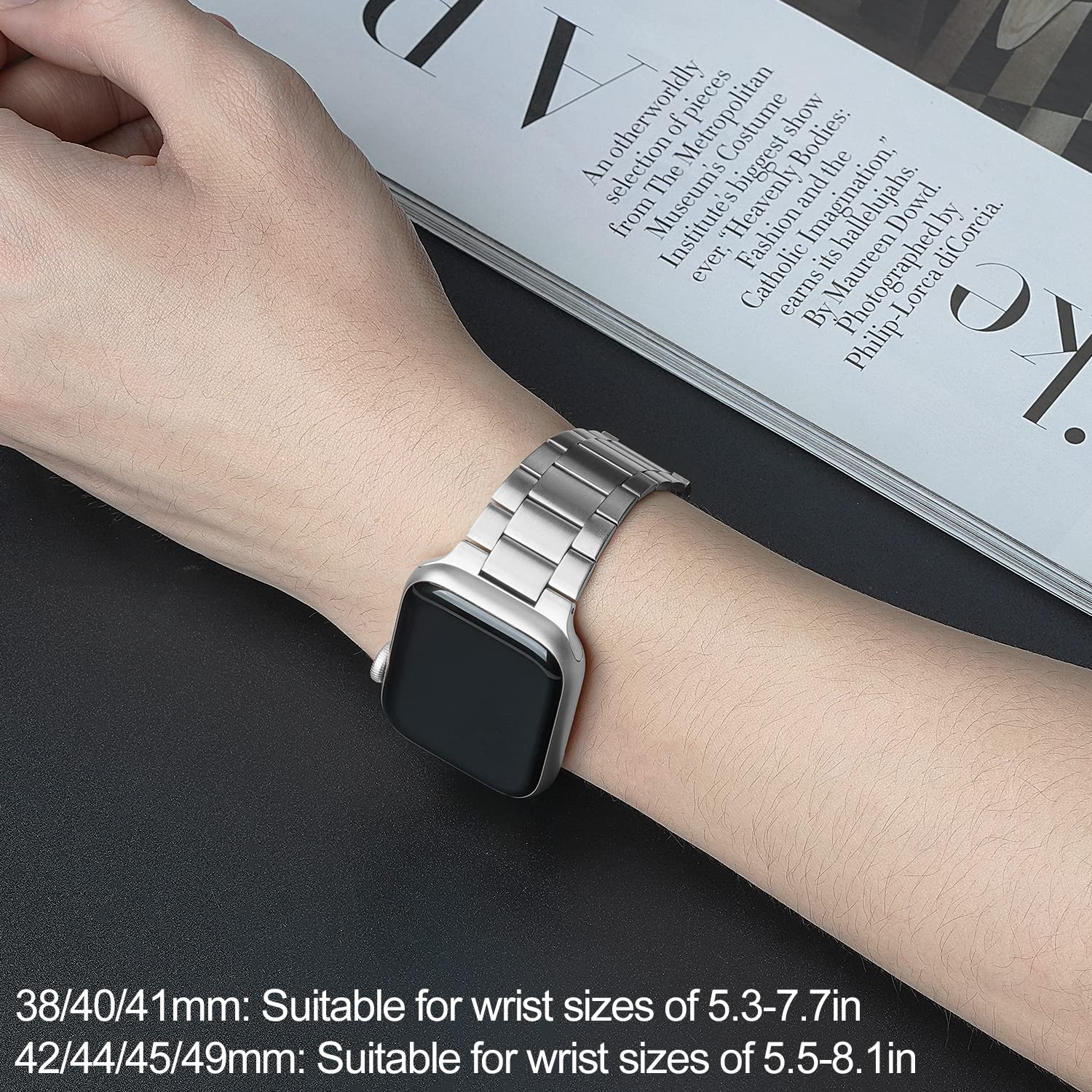 - Slim band for Men/Women Fit wrist of 5.5-8.1in. Gradient fitted waist design of this iwatch band 45mm 44mm 42mm is for both Men and women and provides elegant wearing