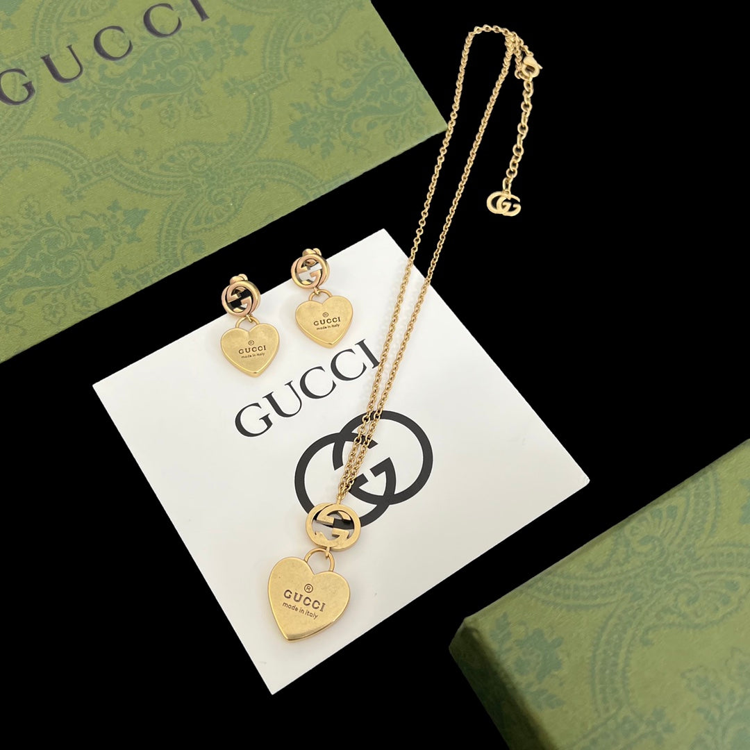Simple Heart Earring Necklace Set