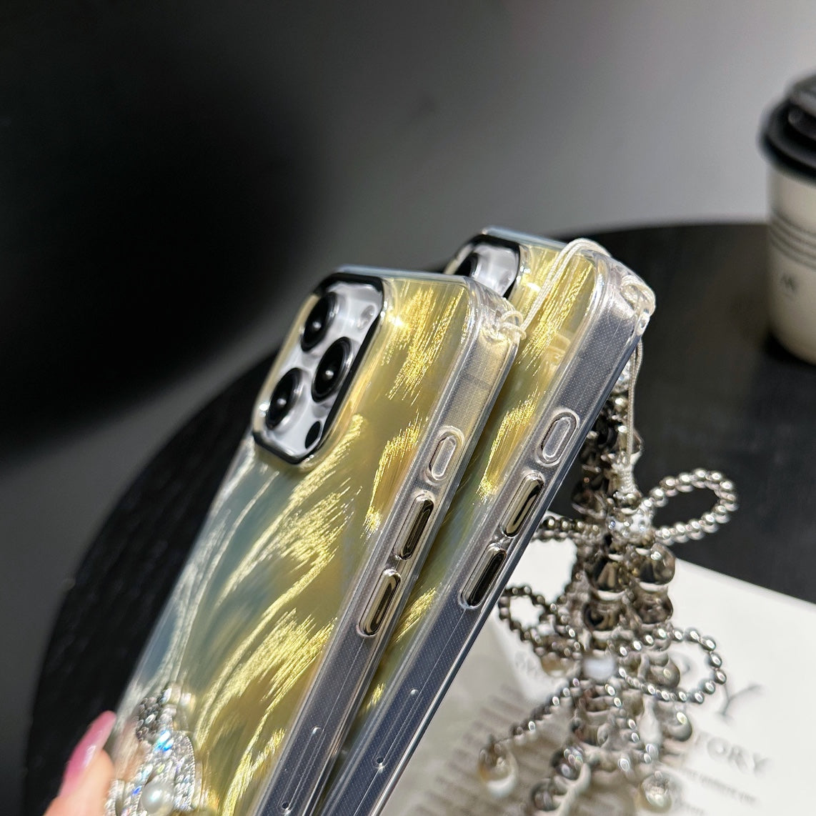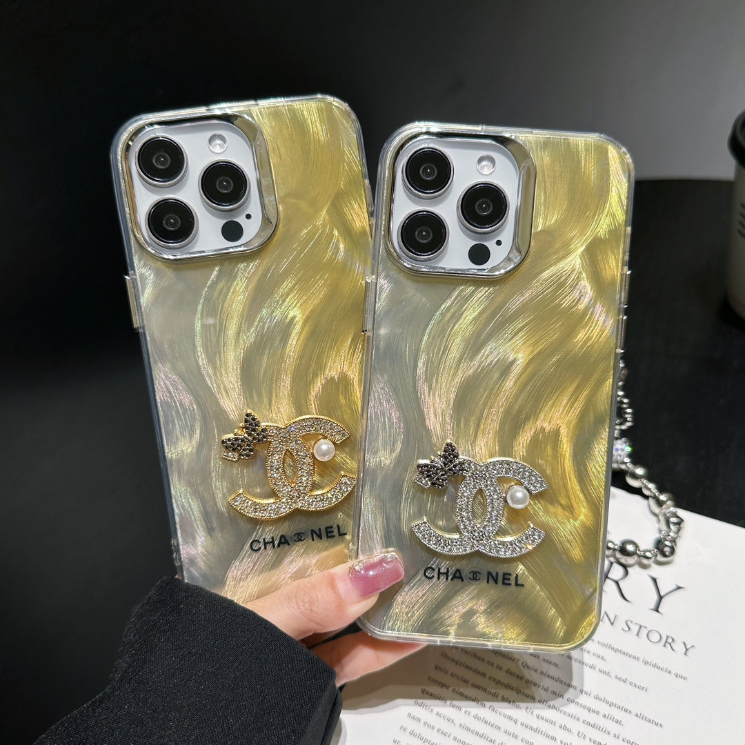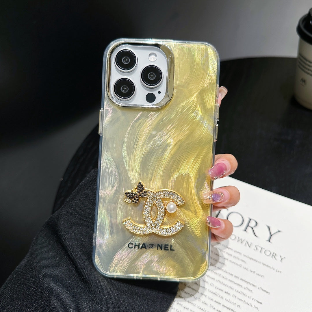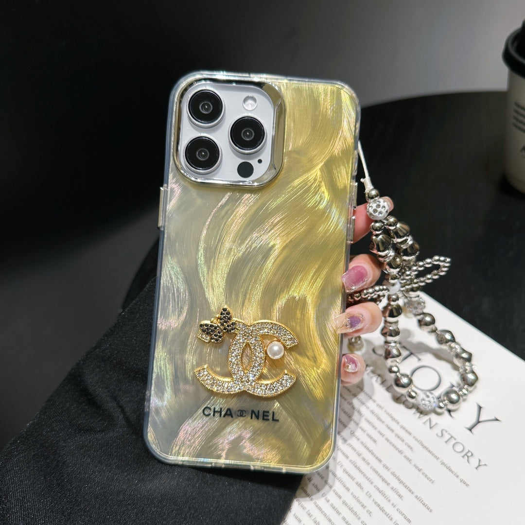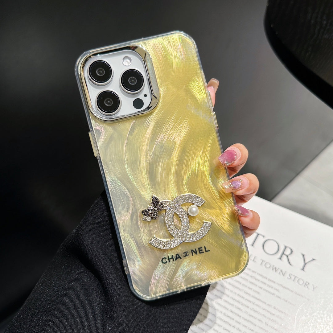 Sparkle Diamond Pearl Letters Yellow Case